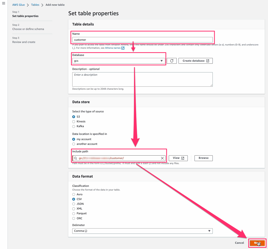 今回、パーティション分割しておりませんが、GCSの場合もAthneaと同様に、Hive と非 Hive の両方のパーティションスキームをサポートしています。この設定は、Glueテーブルを作成する際に設定できます。