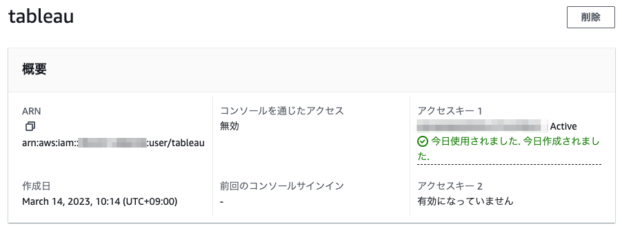Athenaへの接続には、IAMユーザーのアクセスキーとシークレットアクセスキーが必要です。