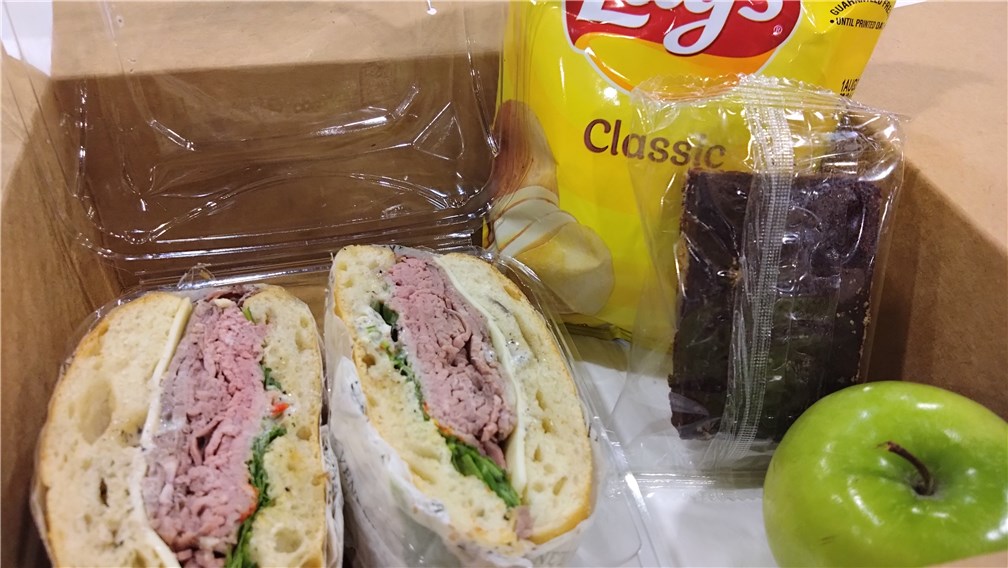 ランチはボックスで提供されていました。いくつかの種類のボックスが用意されていて、各自で選べるようになっていました。写真はローストビーフのボックスです。