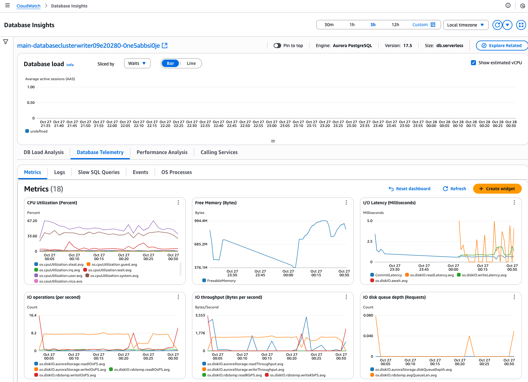 Amazon Aurora の Database Insights 機能を使用すると、CloudWatch を通じて提供される統合的なダッシュボードで、データベースのパフォーマンスを詳細に分析できます。