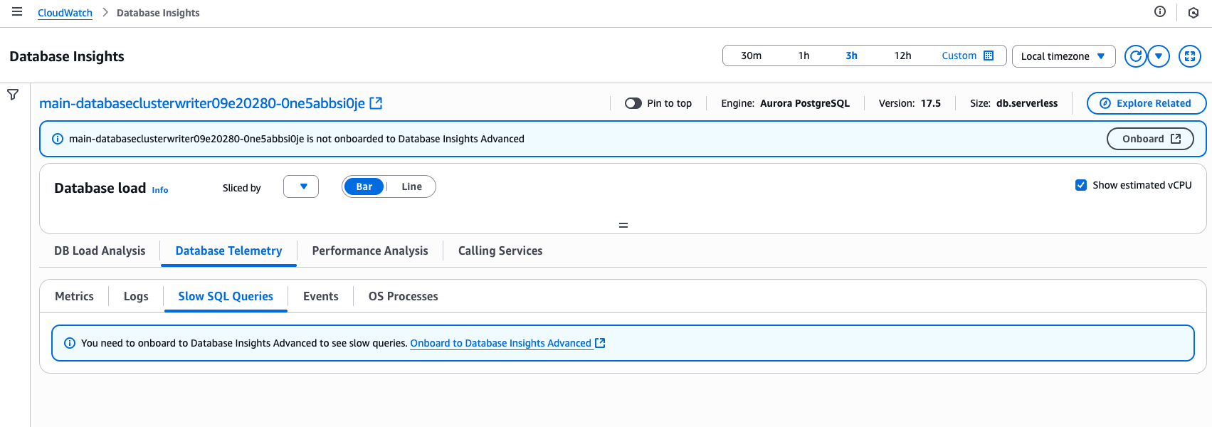 databaseInsightsMode: rds.DatabaseInsightsMode.ADVANCED, // Database Insights の Advanced モードを有効化