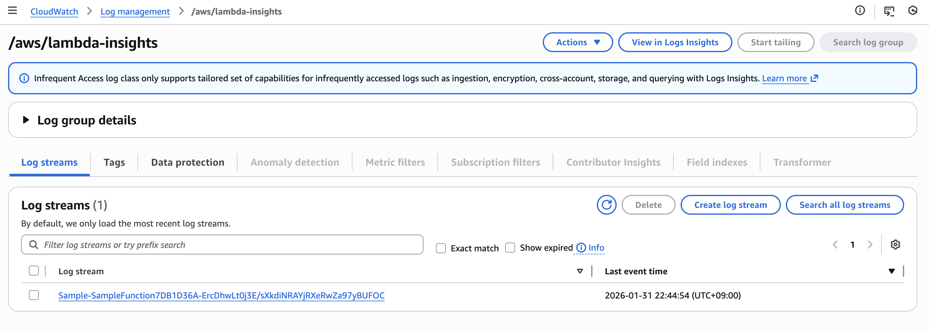 Amazon CloudWatch Logs の IA ログクラス使用時に Lambda Insights を利用できるのか確認してみた