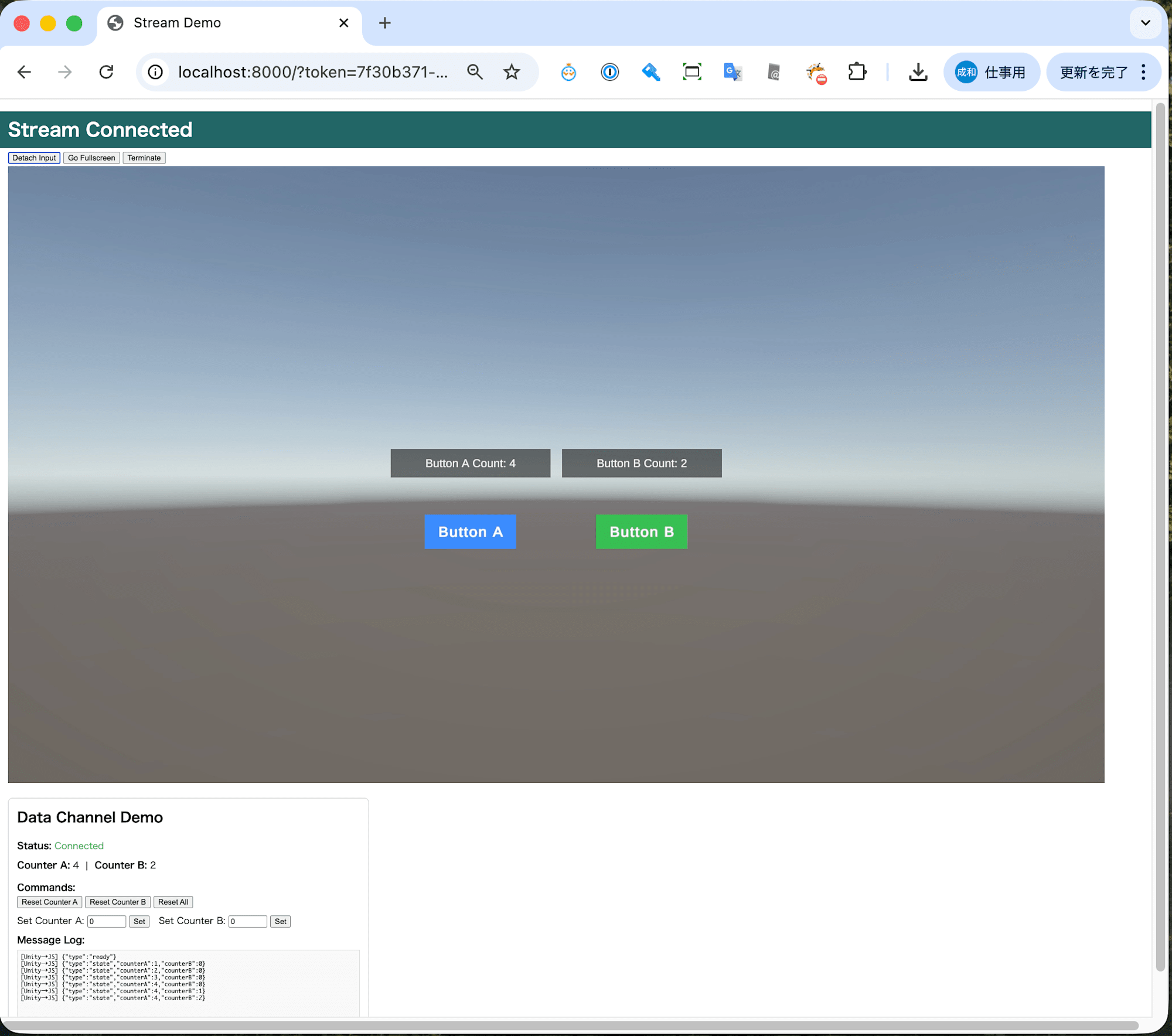 データチャネルを活用することで、ストリーミングされたアプリケーションに対してWebクライアントから柔軟にメッセージを受け渡すことが可能になります。ゲームの操作パネルや管理画面、リアルタイムなデータ表示など、さまざまな表示や入力に活用してください!