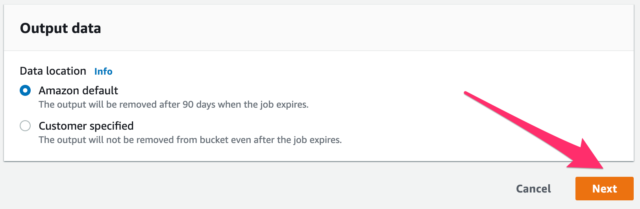 [Output data]はそのまま。[Next]ボタンをクリックします。