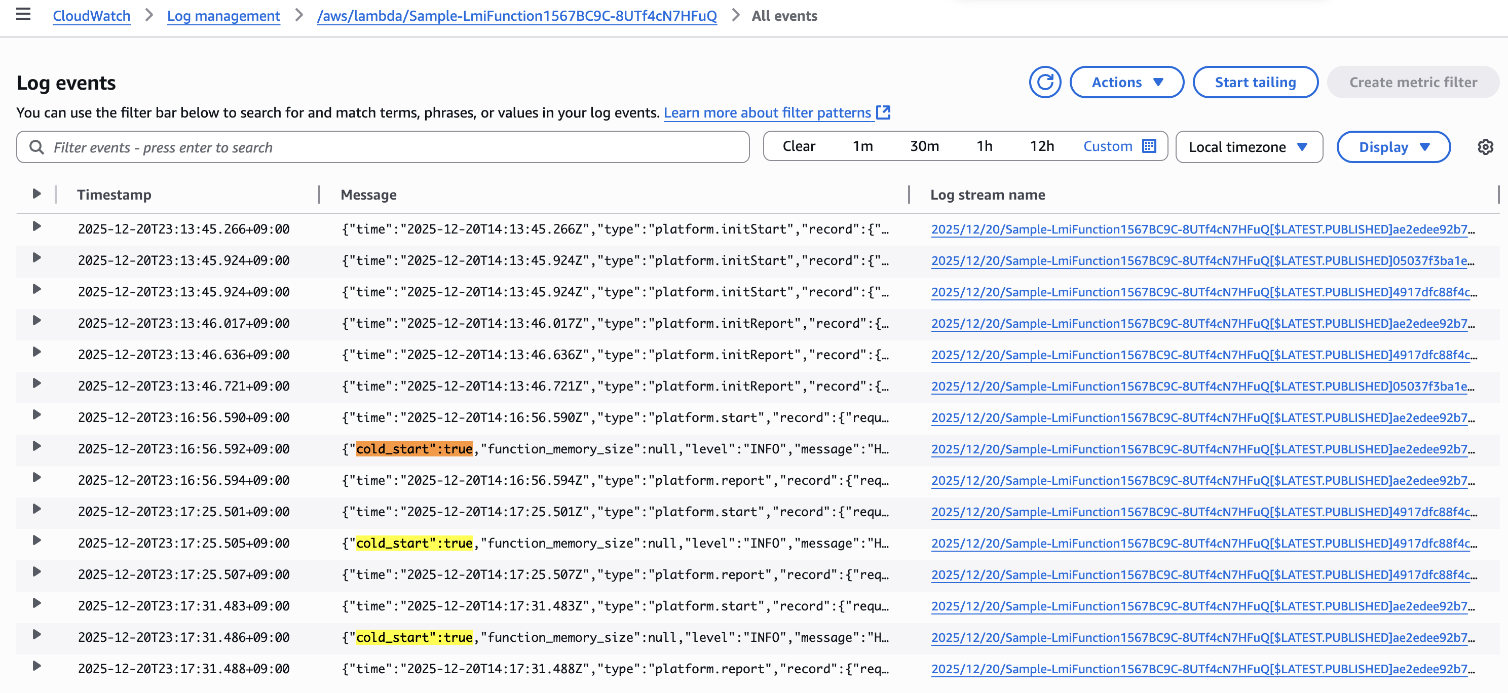 LMI でのログ出力上では全てコールドスタート扱いになる?
