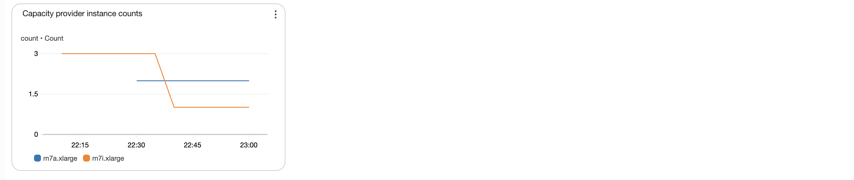 3台 + m7i.xlarge ×2台 にスケールアウト- 2つのインスタンスタイプの混在状態となったが、時間単価やスペックはほぼ同等