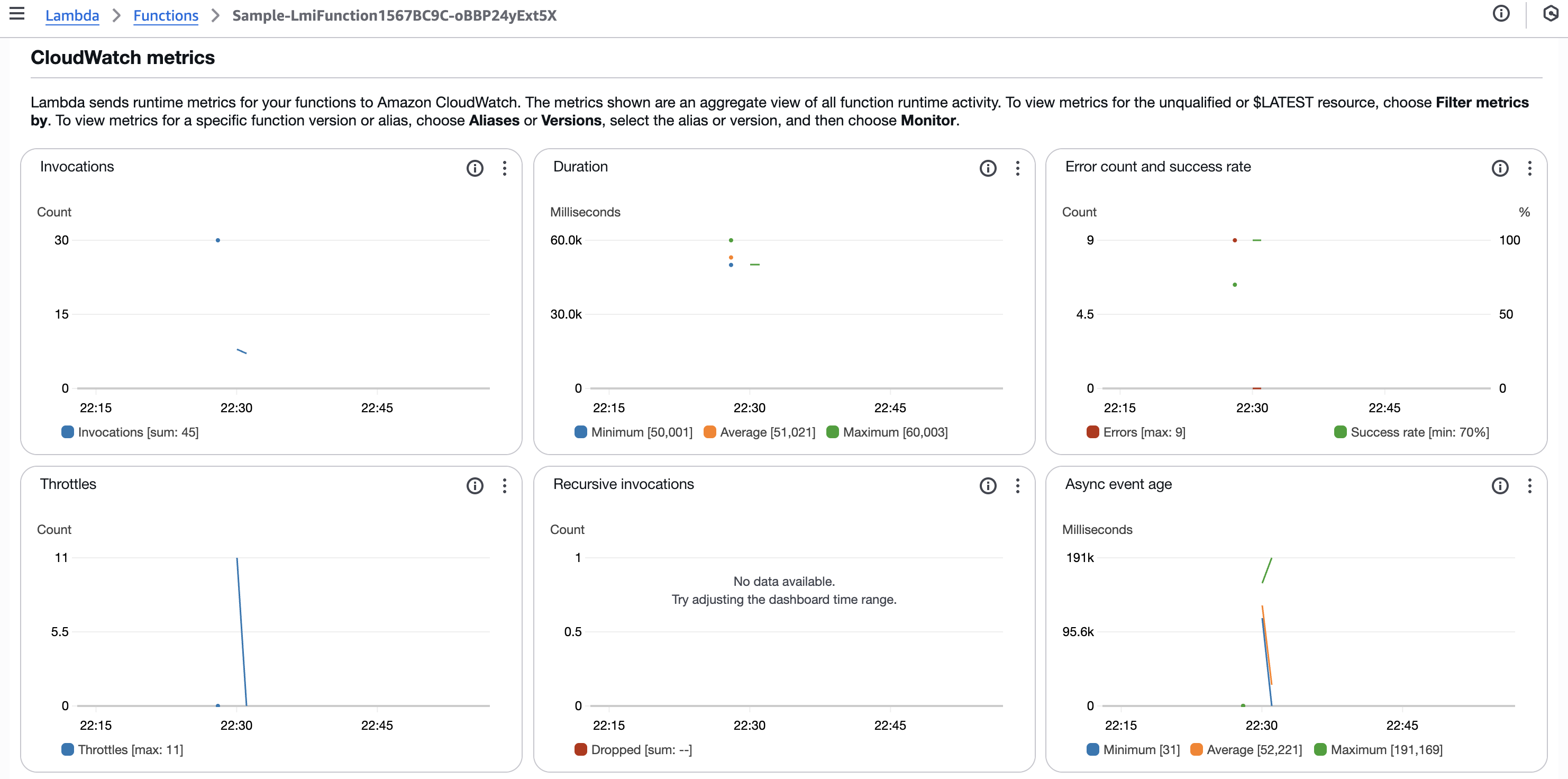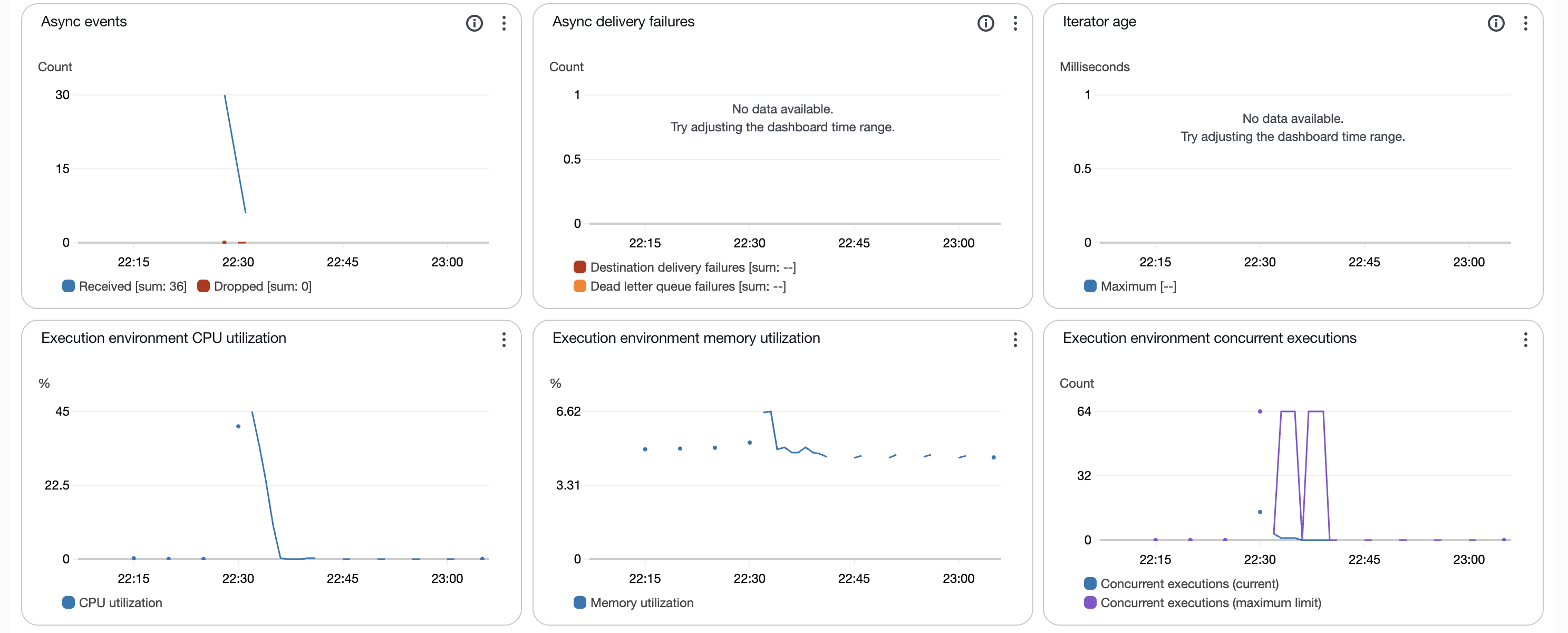 今回は徐々にトラフィックを増加させるなどの器用なことはせず、シンプルに AWS CLI を使って並列で関数を 30 回呼び出すスパイク的な負荷投入を行いました。
