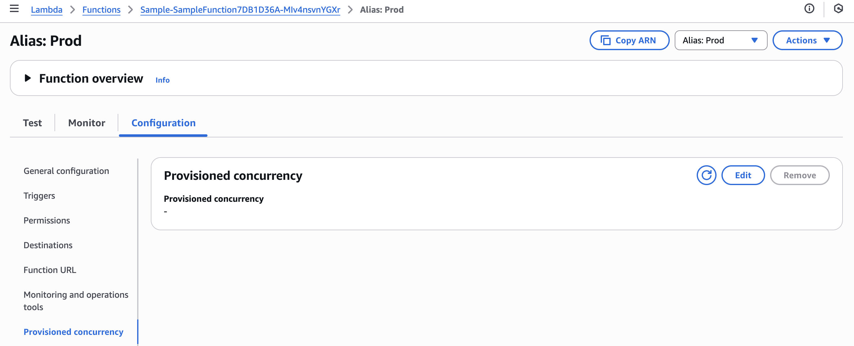 デプロイ直後は既定で Provisioned Concurrency は未設定となります。