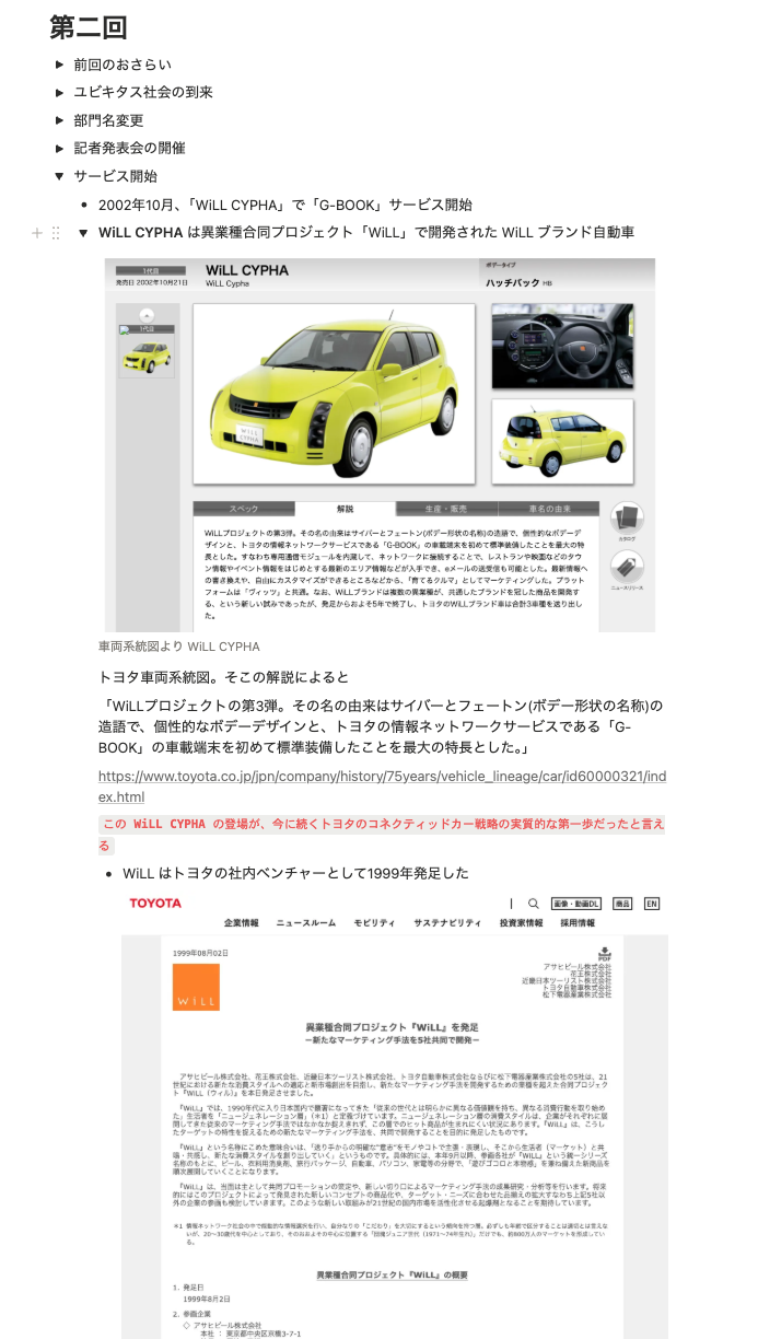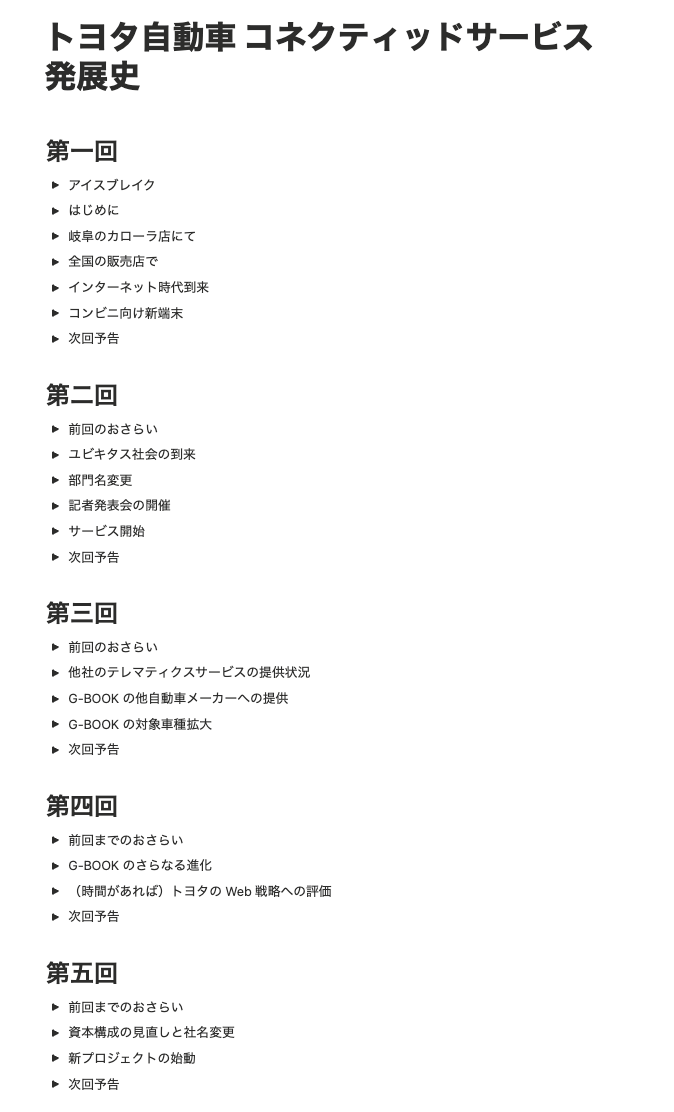 「トヨタ自動車 コネクティッドサービス 発展史」というテーマで社内勉強会を5回開催しました(継続中)