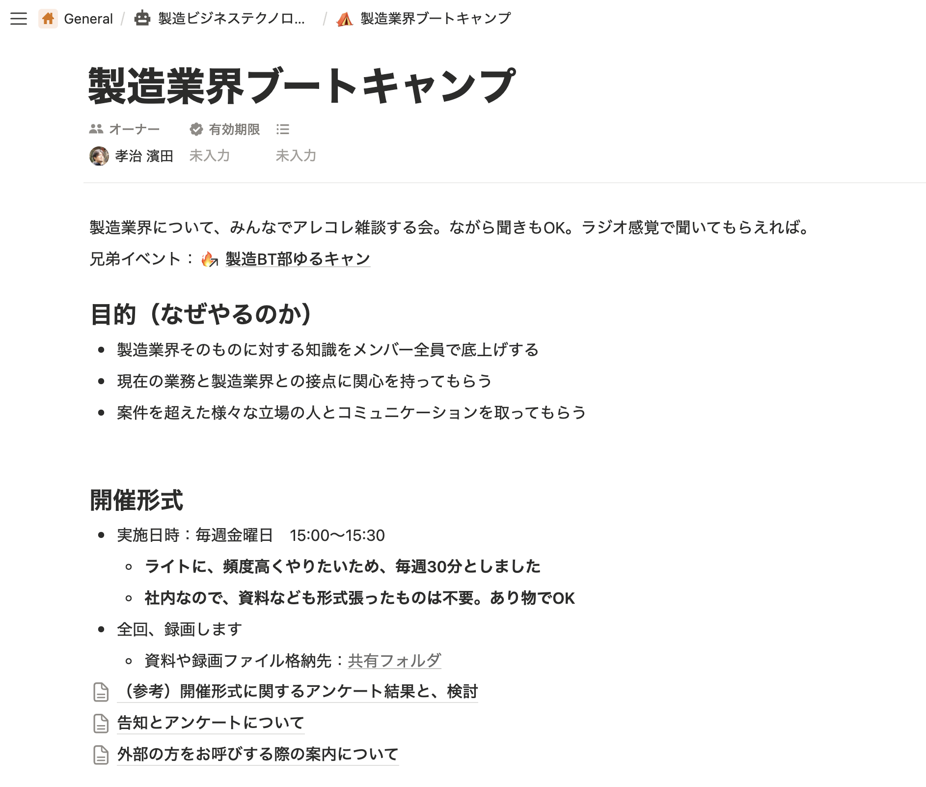 それではどのような活動を行ったかというと、まず製造ビジネステクノロジー部では毎週金曜日に「製造業界ブートキャンプ」という会を設けています。そこでは部内の各メンバーが案件や展示会などで得た知見を共有し、部門全体で業界知識の底上げを図っています。