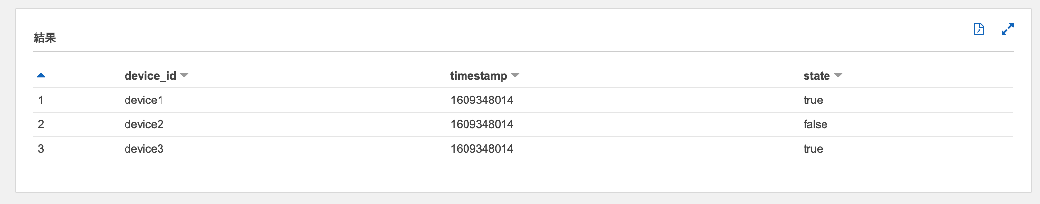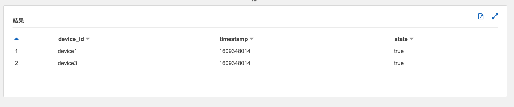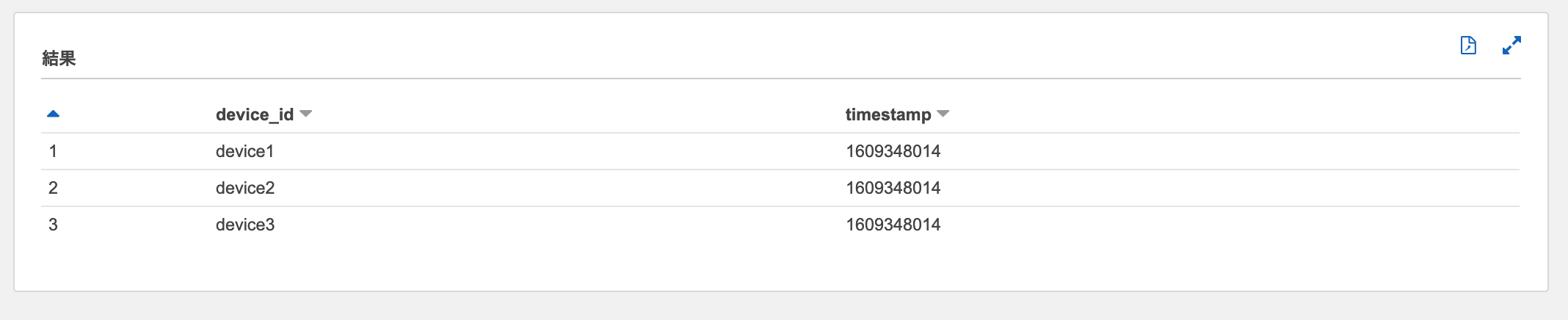 オリジナルSQLを、参照元のテーブルからdevice_idおよびtimestamp列のみ取得するように変更します。