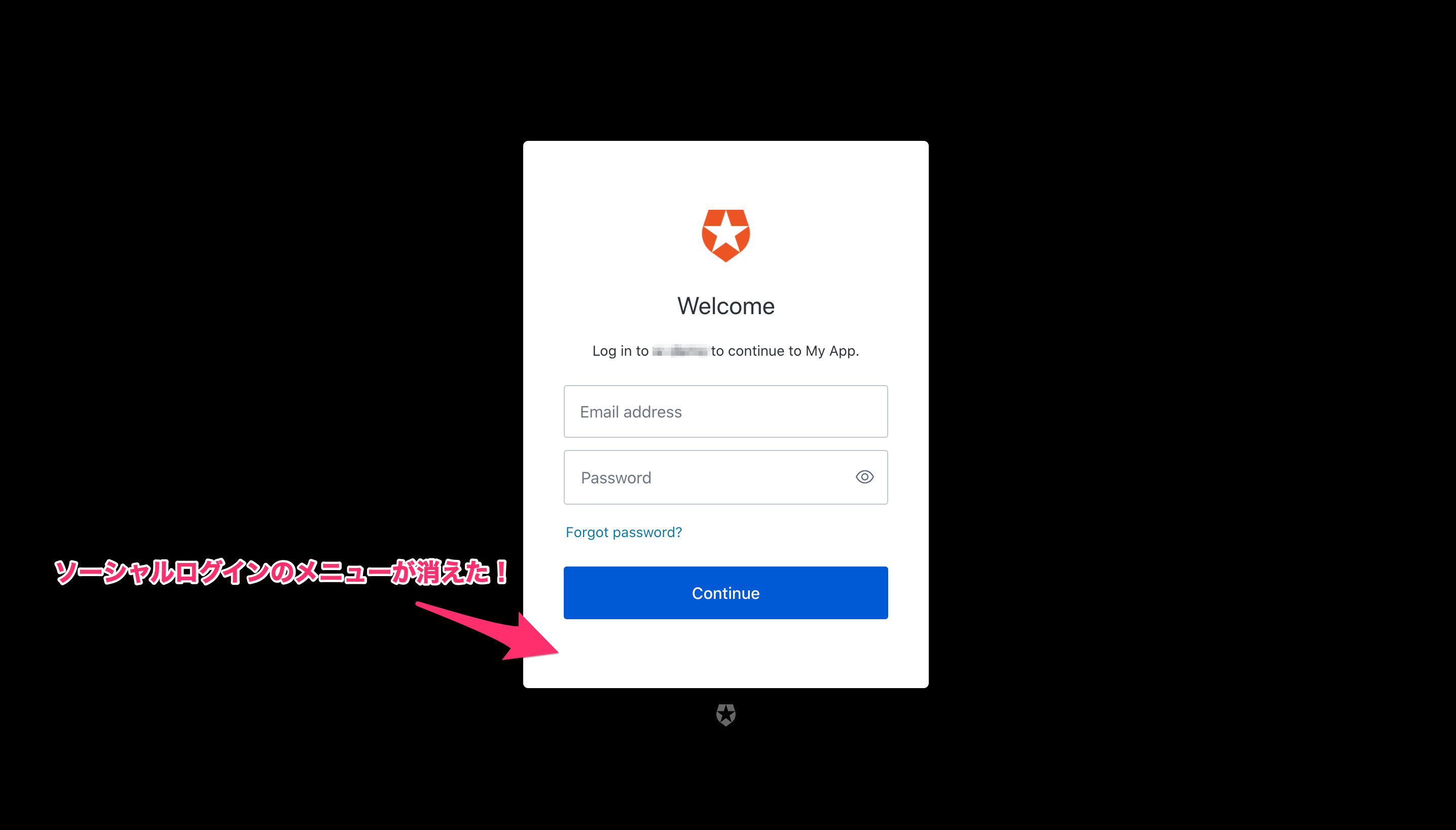 Auth0のログインUIのサインアップ/ソーシャルログインを非表示(無効)にしてみました。