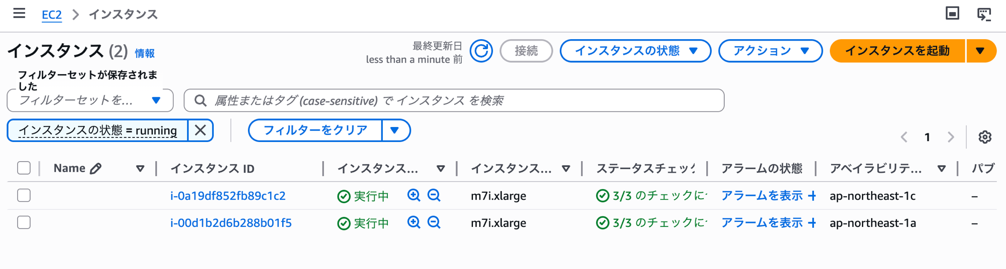 EC2 コンソールのインスタンス一覧にも表示されています。