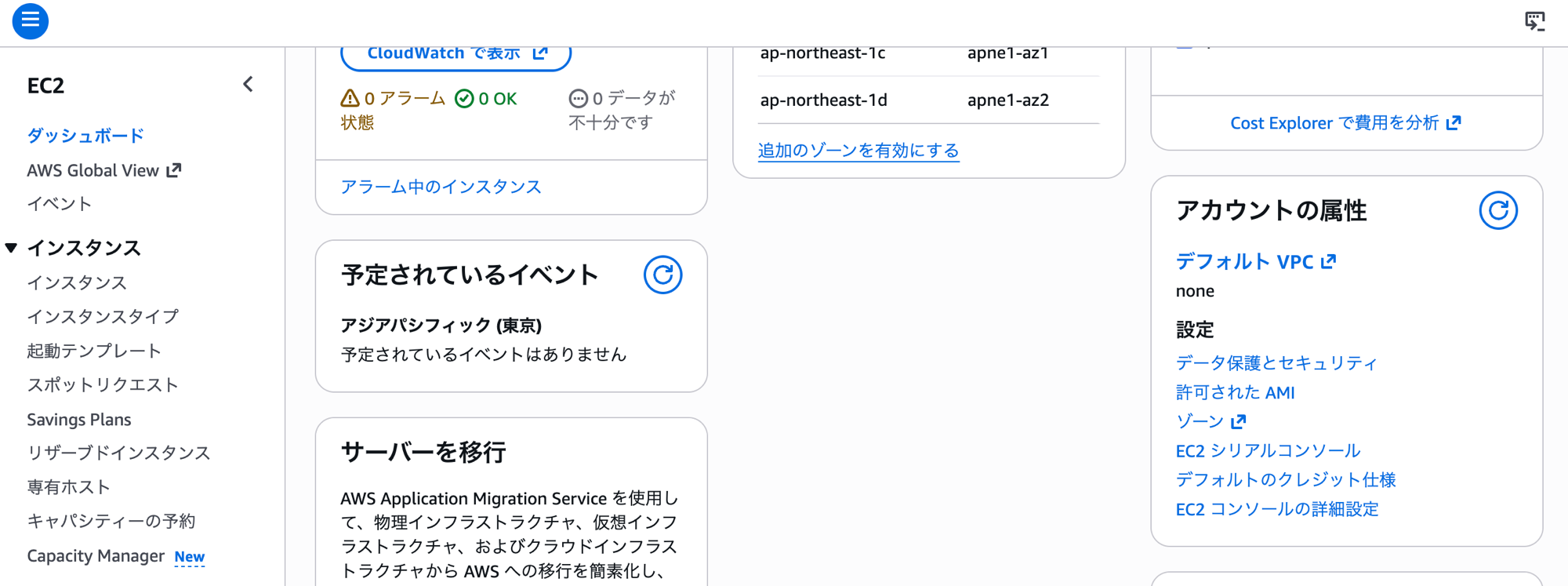 - 新規 AWS アカウントでは