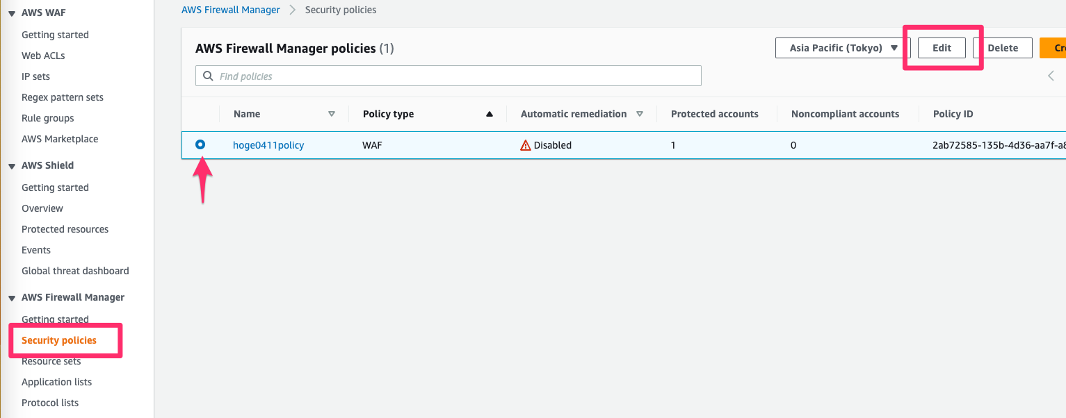 実際に Firewall Manager のポリシー上で上記を設定してみたいと思います。