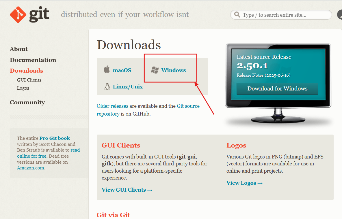 - ไปที่เว็บ https://git-scm.com/downloads แล้วกดดาวน์โหลดตาม OS ของคอมพิวเตอร์เราได้เลยครับ