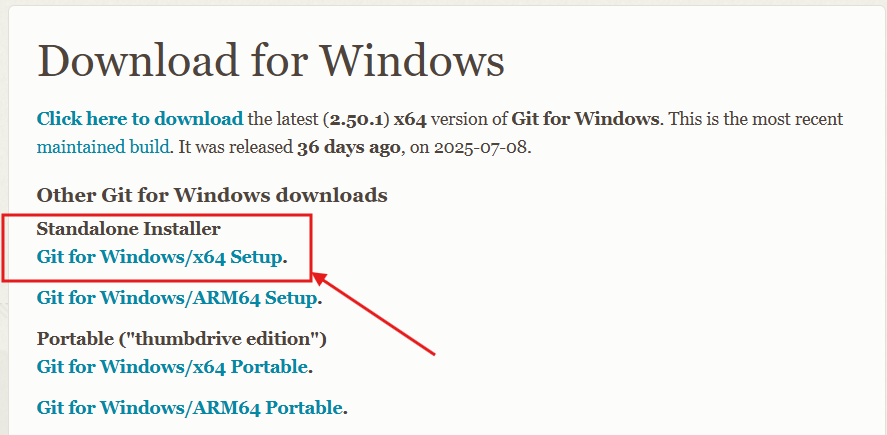 อย่างกรณีผมใช้ Windows 64 Bit ก็คลิกที่ Windows --> Git for Windows/x64 SetUp