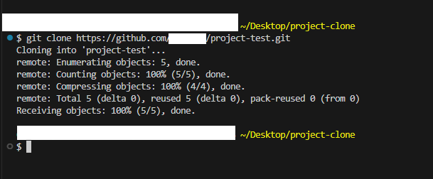 (ในตัวอย่างผมสร้าง project-clone ใน desktop แต่ผู้อ่านจะสร้างที่ไหนก็ได้นะครับ)