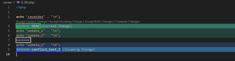 - Accept Current Change: เก็บเฉพาะ Code ที่มาจาก main