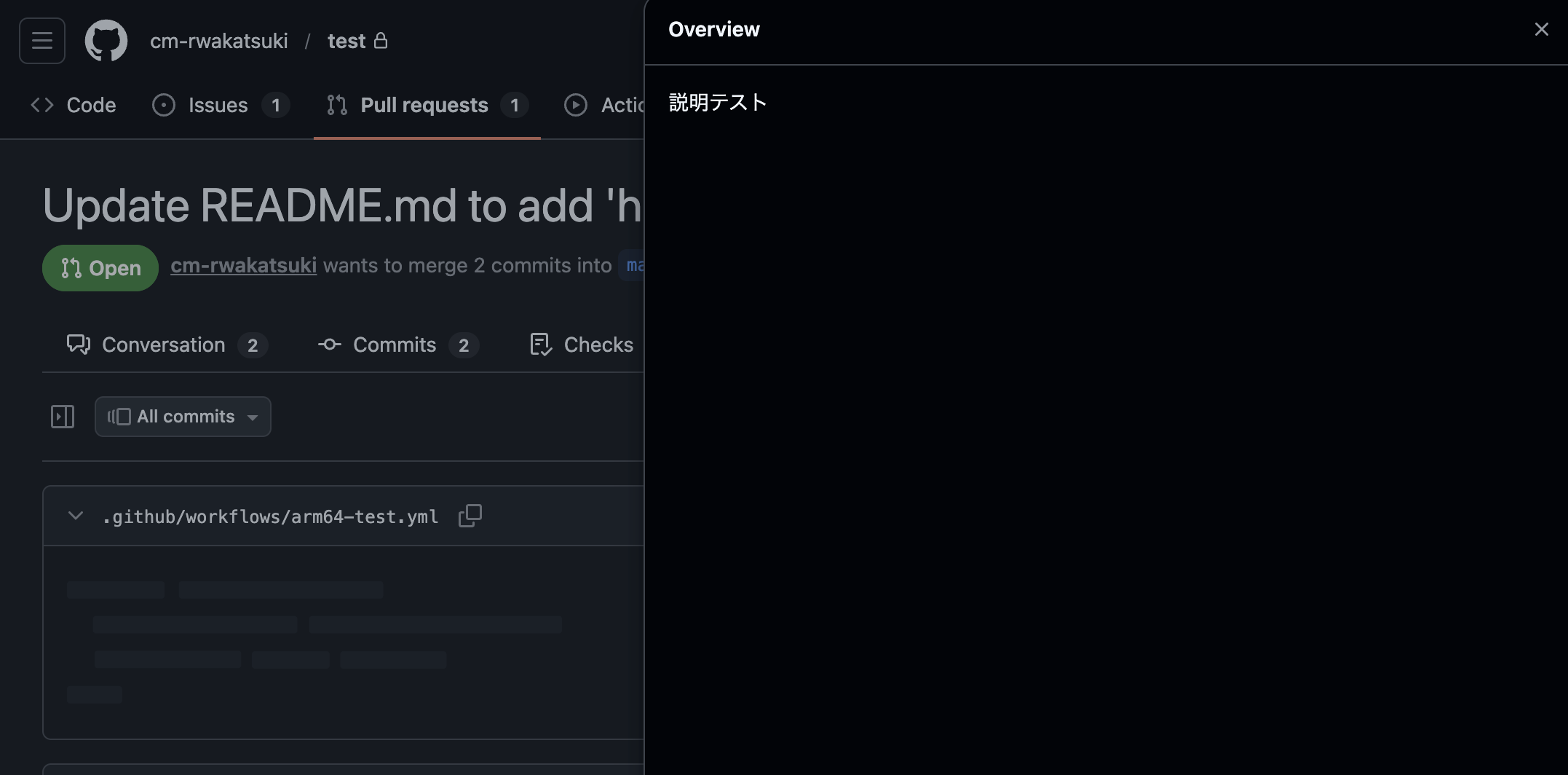 プルリクエストの説明やコメントをタブを切り替えずに表示