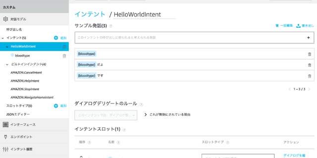 後は普通通りスキルを作っていくだけです。血液型を聞くスキルを作ってみます。