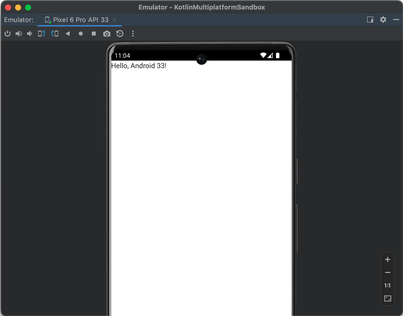 デバイスが作成できたら、実行構成に androidApp、デバイスに上記で作成したデバイスが選択されていることを確認して、実行ボタンをクリックして、実行します。