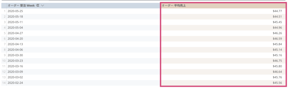 平均売上が小数点第2位まで表示されているのを切り上げます。