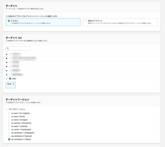 ターゲットで OU を指定することが出来るので、指定した OU 配下のアカウントのみを一括有効化することも出来ます。