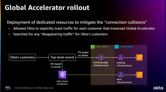 Okta 社の事例紹介では、Global Accelerator 構成に移行した際の時間経過に伴うトラフィック振り分けをどのような割合で行ったのか等の具体的な内容を知ることができた点もよかったです。