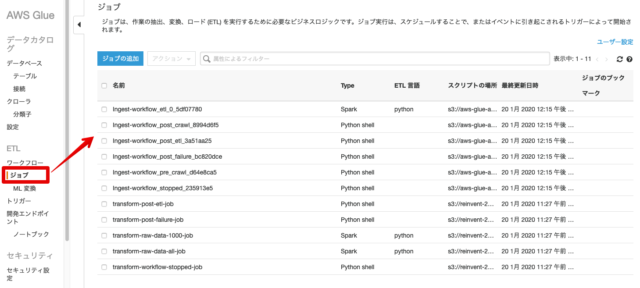 Glueジョブを確認してみると、ブループリントによってジョブが生成できていることを確認できます。