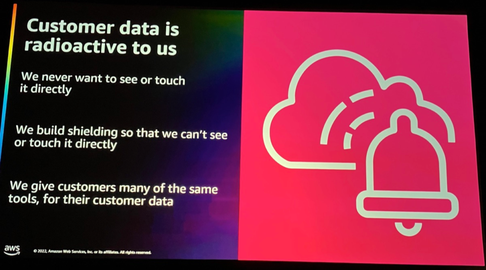 顧客のデータはAWSにとっては触りたくないものです。そのため、直接触ることができないように隔離します。