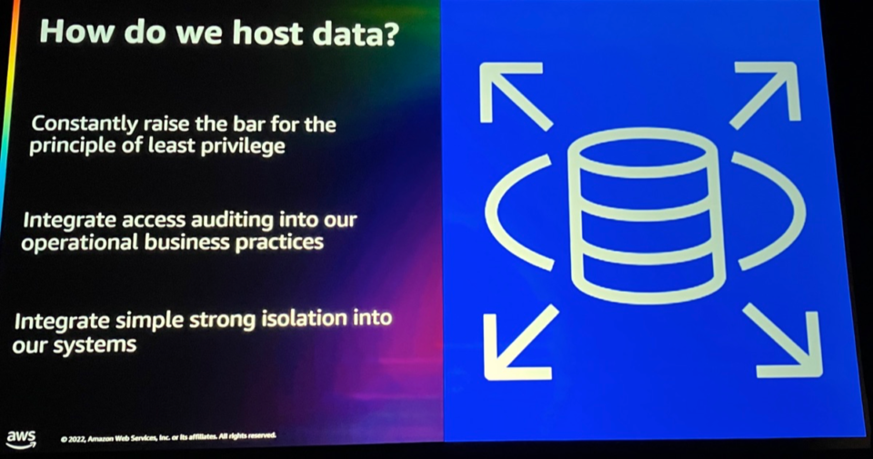 AWS は組織や規制当局と協力して、業界や政府で最も機密性の高いワークロードをホストしています。 このセッションでは、信頼できる AWS オペレーターやサービスからも、AWS がデータを保護する方法を学びます。 AWS Nitro System と、それがコンフィデンシャル コンピューティングと信頼できるランタイム環境を提供する方法を調べ、AWS Identity and Access Management (IAM) に組み込まれている暗号化管理チェーンを深く掘り下げます。 最後に、暗号化を使用して多層防御を提供する方法と、AWS で検証済みの分離と顧客の透明性に重点を置いている理由について説明します。