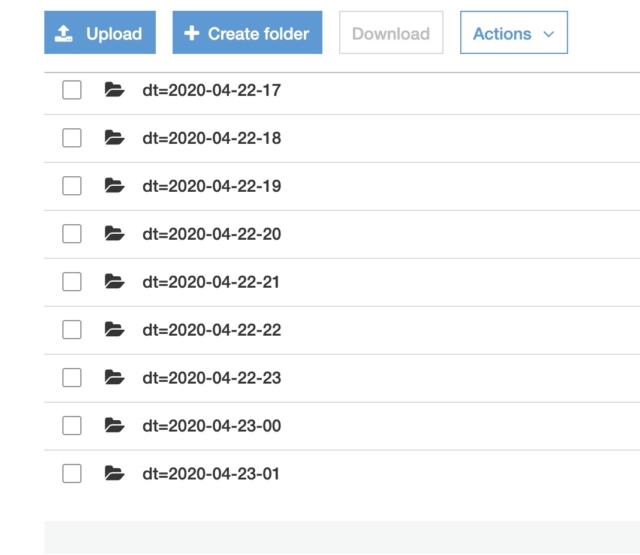 dt=yyyy-MM-dd-HH のキー構成で階層が切られています。