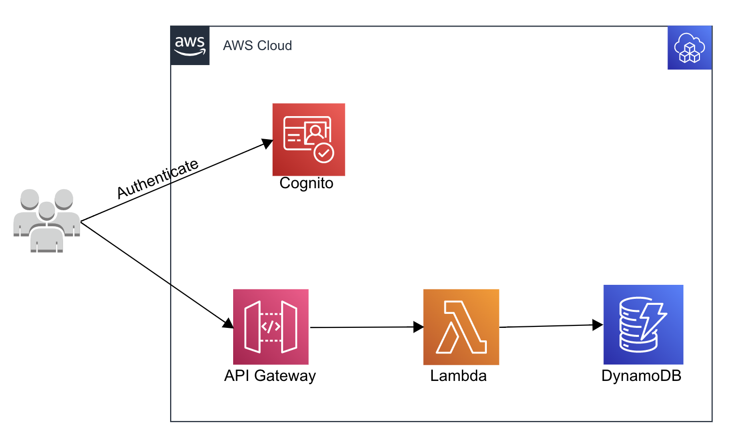 - Cognito User Pool : ドメインとクライアントを備えた User Pool。