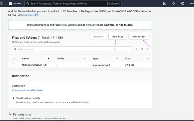 Objects are files stored in the bucket, they have a key which is the full path. You can either add a file or a folder.