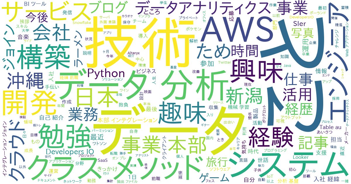今回は、なるべく周りに馴染めるように同じ部署の人たちのジョインブログ(2020年1月〜2021年12月)17本のワードクラウドと、再ジョインブログ7本のワードクラウドを作成してみました。