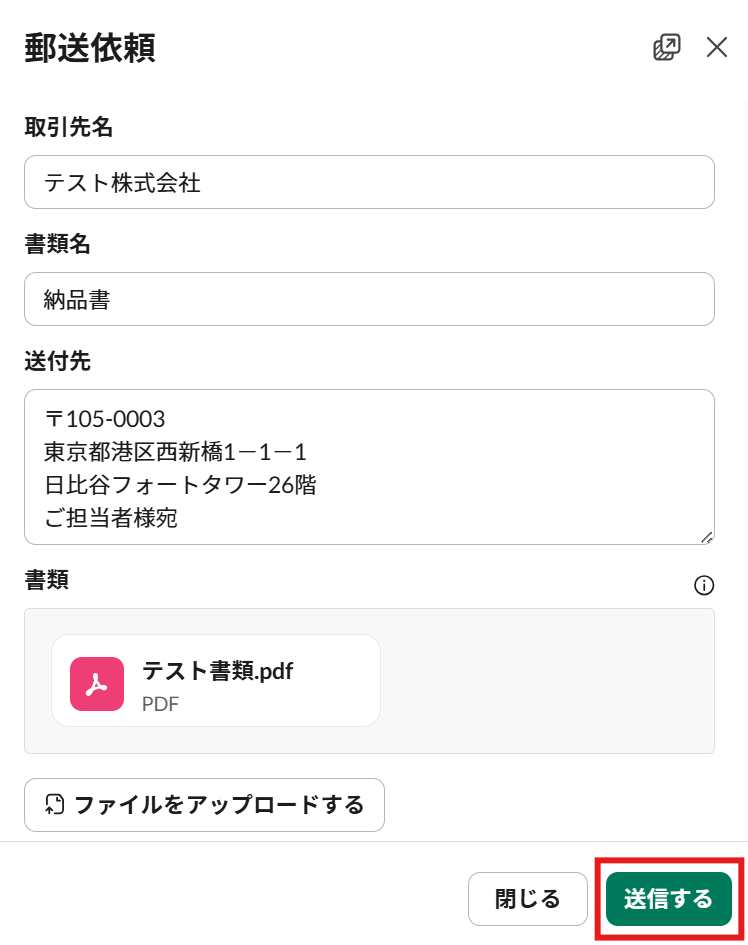 - フォームに記入された内容を、依頼を受けているチャンネルに送信する