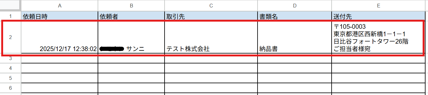 また、連携したスプレッドシートに情報が追加されました!
