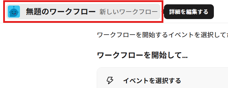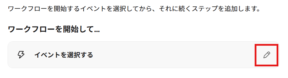 ワークフローを開始するのに、「イベントを選択する」の鉛筆マークをクリックします。