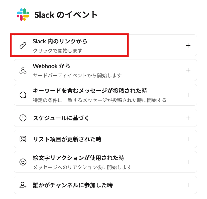 ワークフローのリンクをSlackチャンネルの「ワークフロー」タブやSlackメッセージに貼ると開始できるボタンが表示されます。