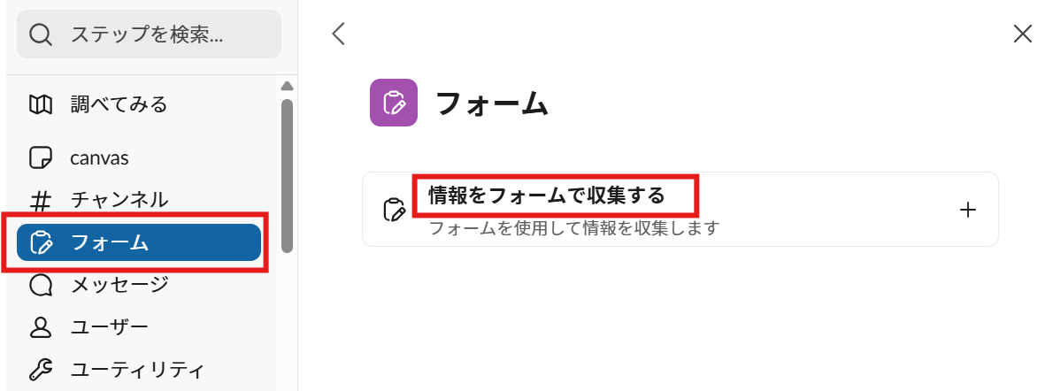 左側のメニューで「フォーム」をクリックし、「情報をフォームで収集する」を選択します。