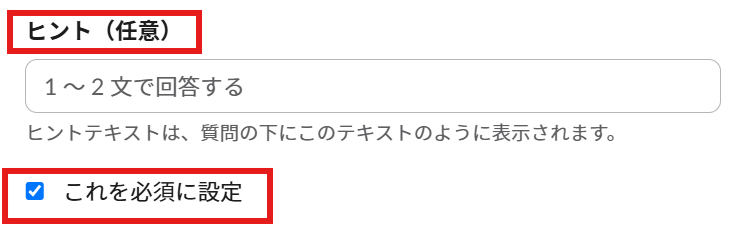 - ヒント(任意):質問の下に入力したテキストが表示されます