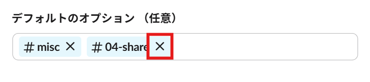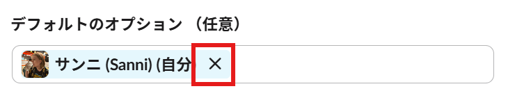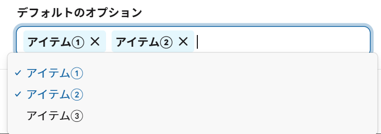 こちらもデフォルトのオプションが設定できます!複数選択肢なので、複数のオプションが選択できます。「やはりこれは外したい…」と思ったとき、×のマークから外せます!