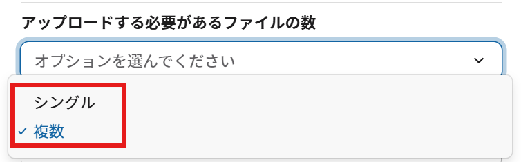 ファイルの数はシングル(1つだけ)か複数(制限なし)に設定できます。