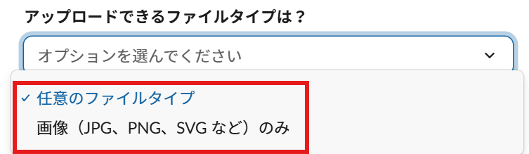ファイルのタイプは任意(制限なし)もしくは画像のみに設定できます。