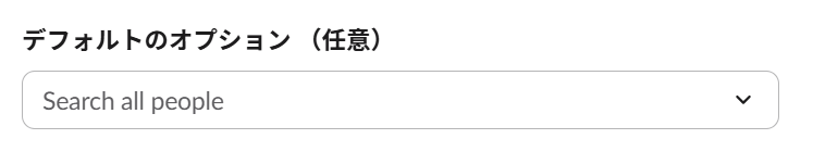 こちらの質問タイプは、1人のSlackユーザーを自由に選択できます。任意のデフォルトオプションも入力して検索もしくはドロップダウンから設定できます。