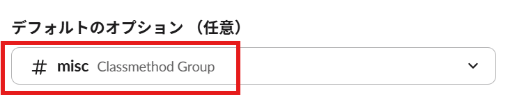 1つのSlackチャンネルを自由に選択できます。任意のデフォルトオプションも入力して検索もしくはドロップダウンから設定できます。