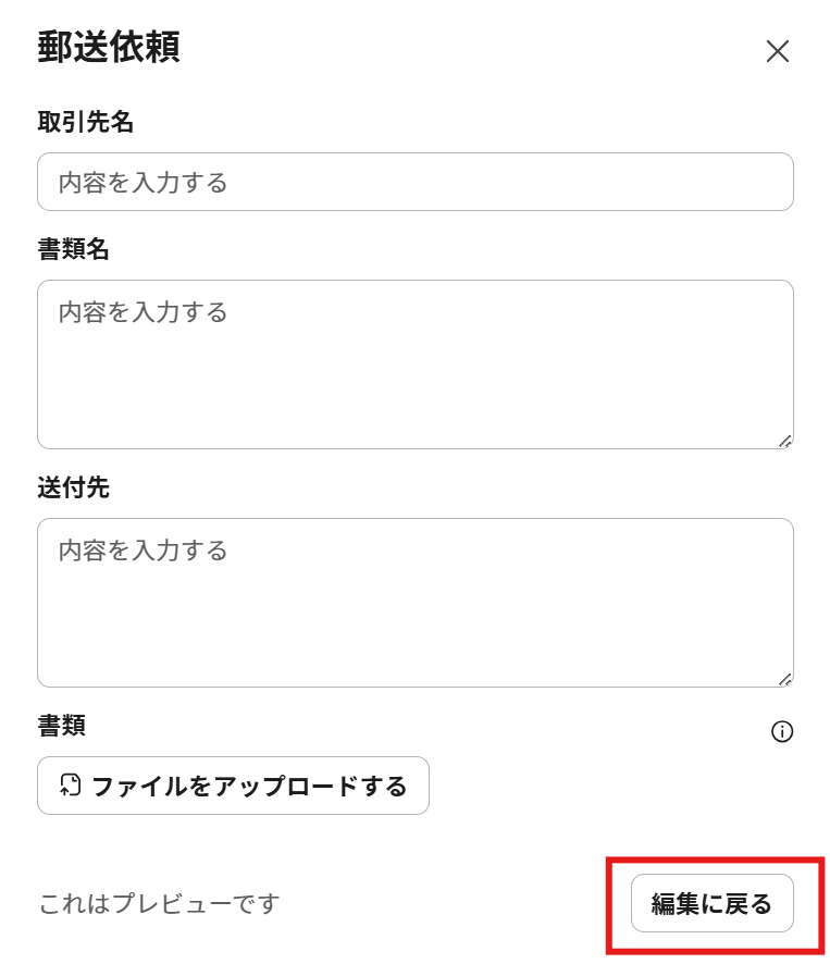こちらはプレビューの画面です。「編集に戻る」をクリックすると、また編集画面に戻ります。