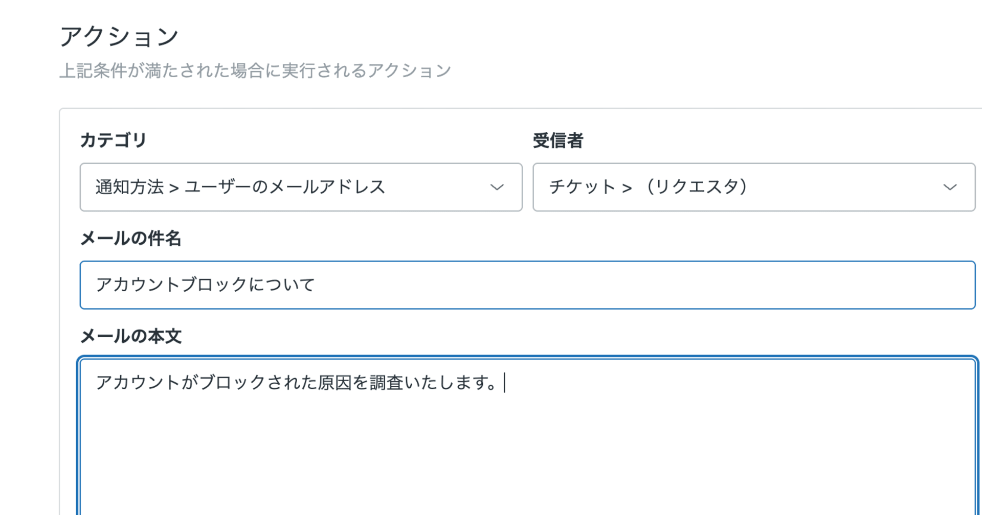 設定の「コールの会話ログをチケットに表示」を無効にすると、会話ログはチケットに追加されず、概要のみ追加されます。