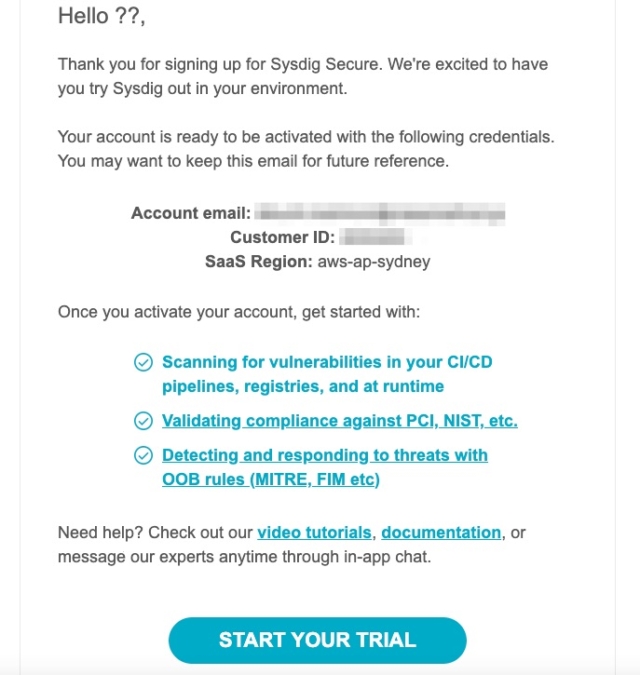ここからは実際に無料トライアルを使って、どんなことが出来るのかを具体的に確認していこうと思います。 本記事では Sysdig Secure を導入して、イメージスキャンするところまでを試してみたいと思います。